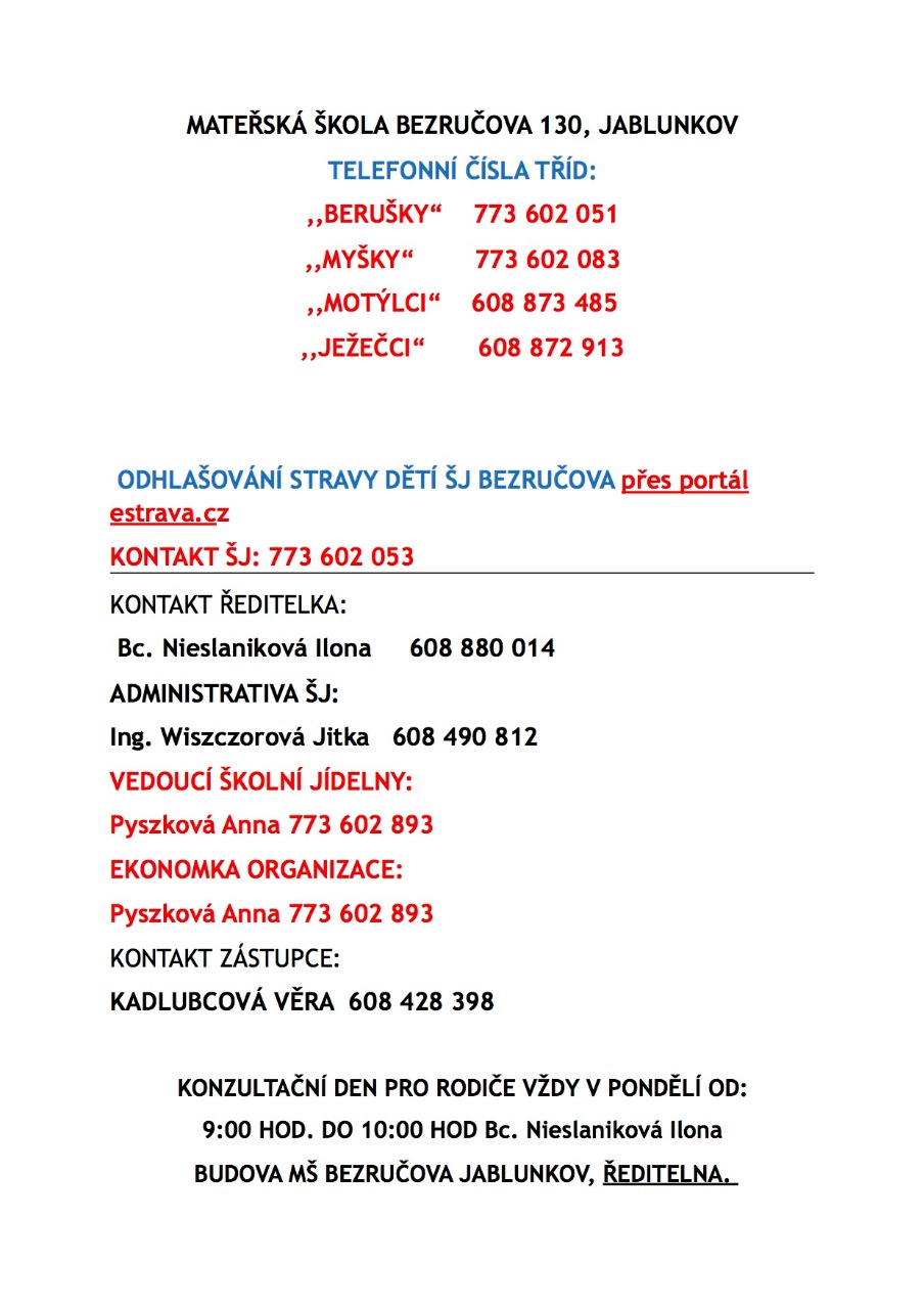 Kontakty MŠ Bezručova
